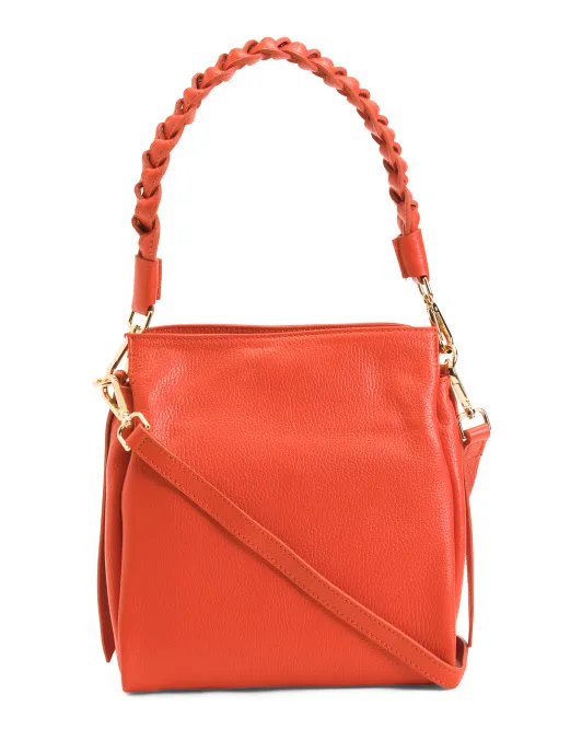 Кожаная сумка-портфель с плетеной ручкой Made In Italy Viola Castellani, коралловый