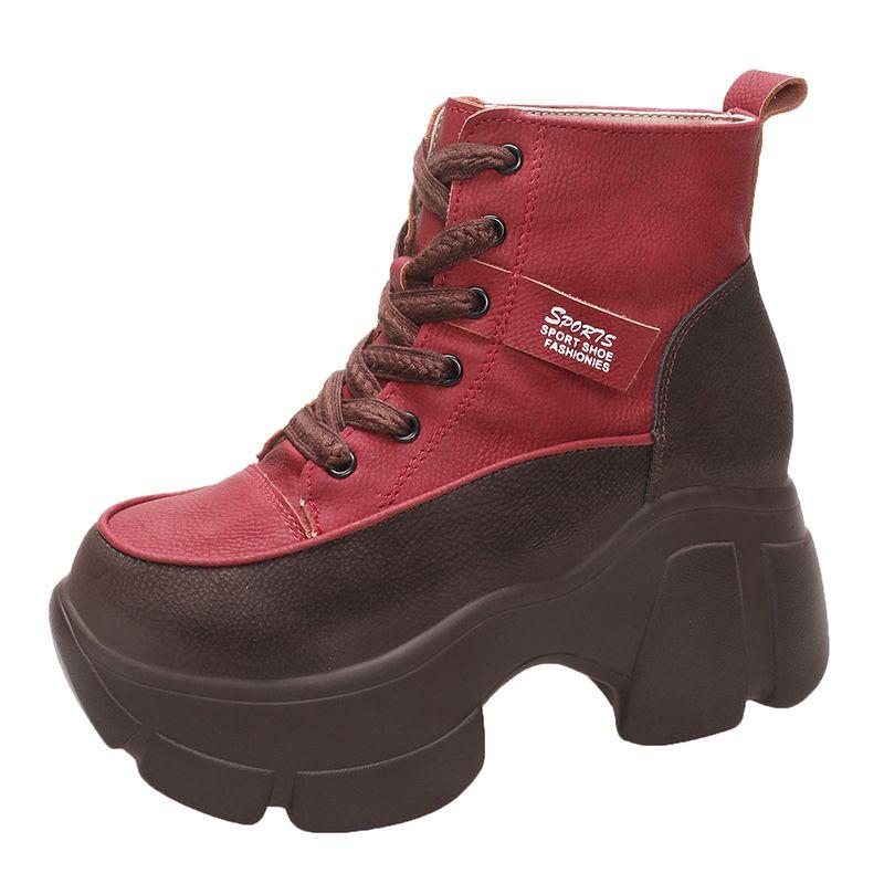 Кожаные Ретро Женские Осенние На Толстой Подошве С Внутренней Платформой Модные Короткие Ботинки Сочетание Цветов Мягкая Подошва Высокие Ботинки 37 вино красного