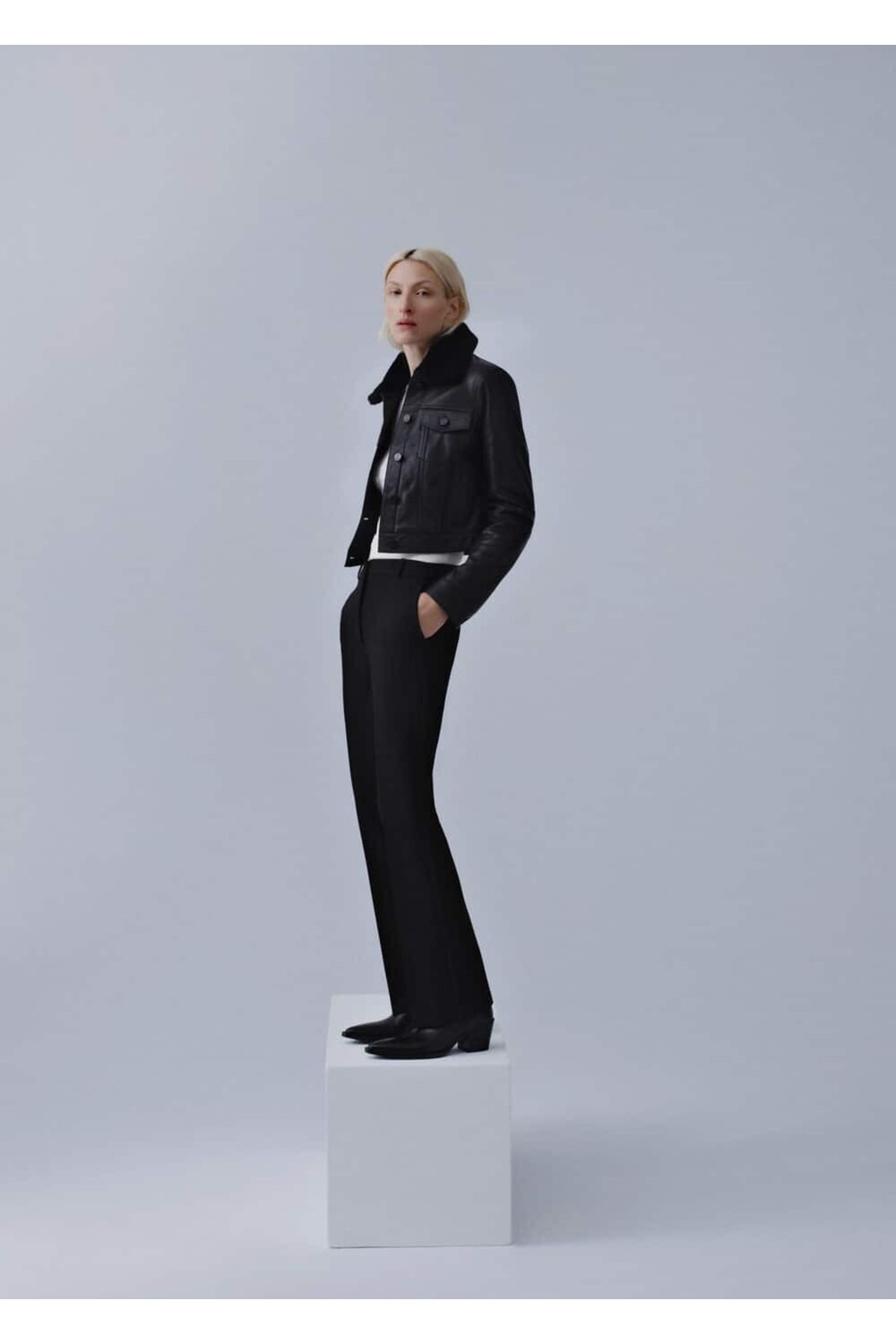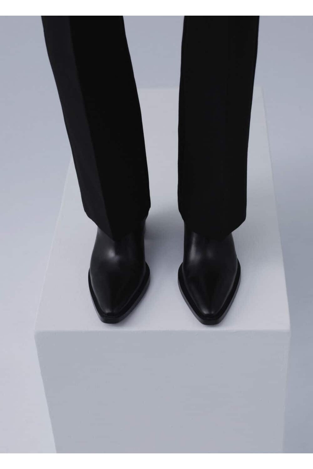 Кожаные ботильоны с острым носком Mango, черный