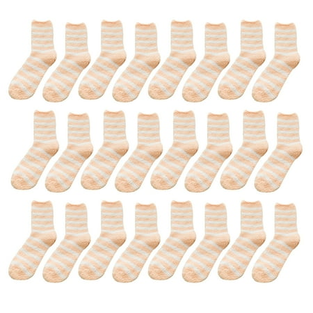 Linyer 12 Pairs Cozy Thickened Warmer Socks Set Floor Stripe Pattern Low Friction Crew Solid Good Fit Stockings Kit Home Men Drak Pink Orange