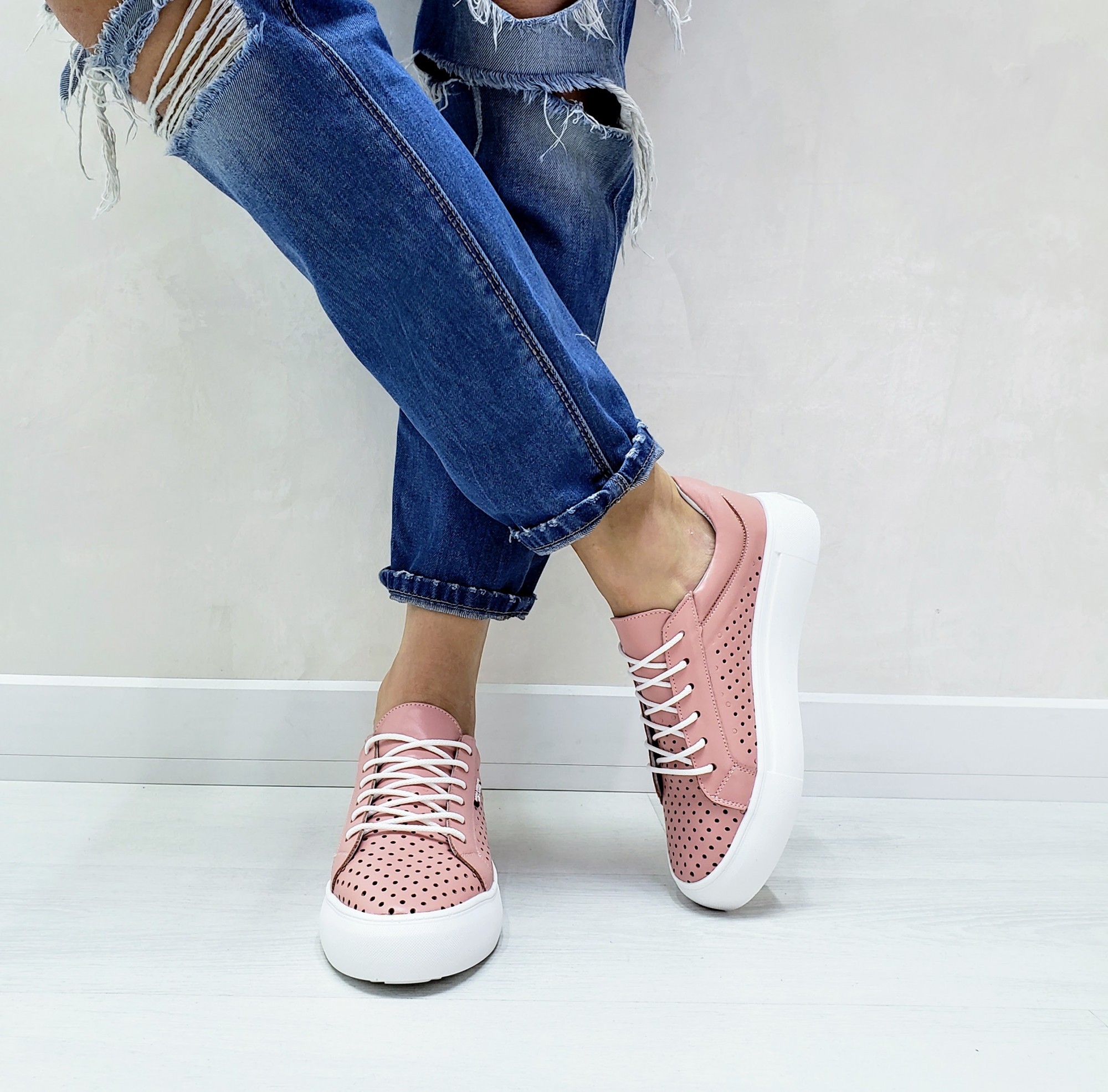 Кожаные кеды PADUCHINI BOOMER с перфорацией 37 24 см. Пудровые -1040