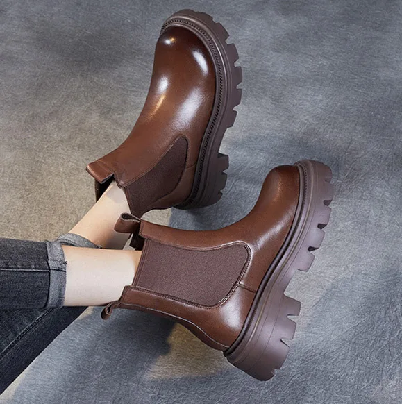 Кожаные мотоциклетные ботинки EAGSITY на массивном каблуке, женские короткие зимние ботинки, Коричневые Высокие ботинки с меховой подкладкой
