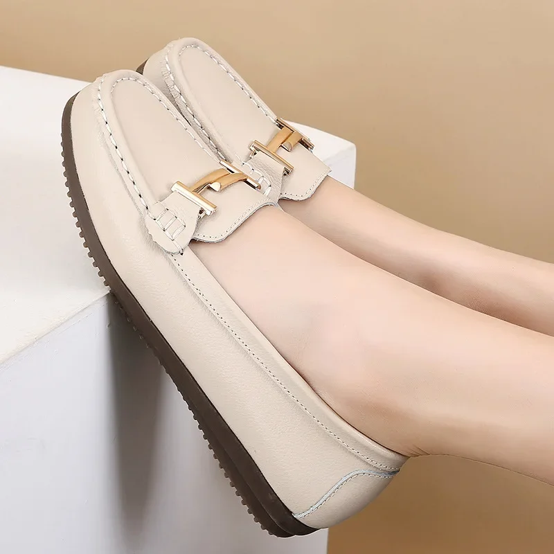 Кожаные туфли на плоской подошве, повседневные туфли с закрытым носком, лоферы с одной педалью и мягкой подошвой для мам среднего возраста, легкие женские туфли из говяжьей кожи