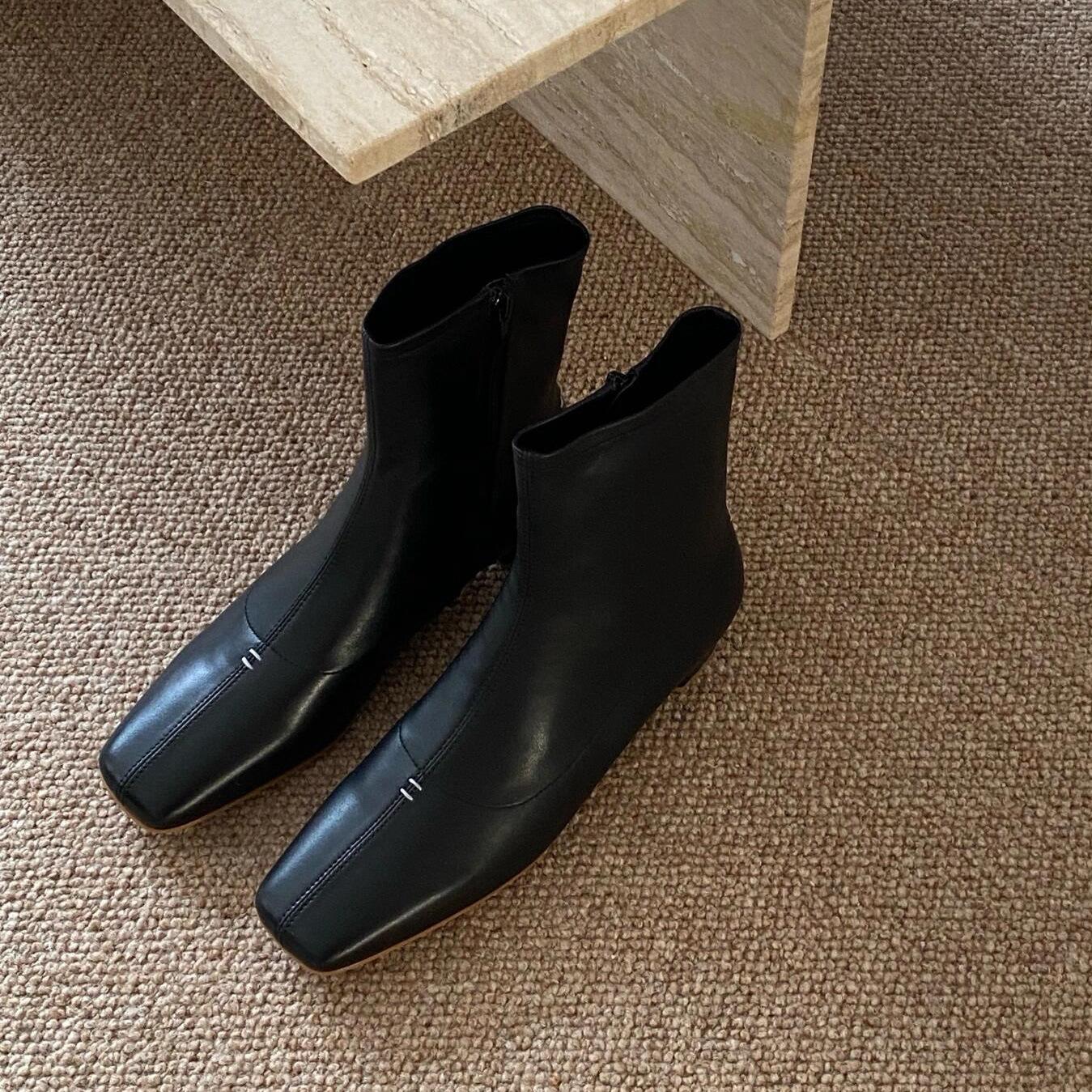 Кожаные узкие ботинки челси женские с толстым каблуком и боковой молнией квадратные британские ботинки Martin короткие женские ботинки 40 чёрный