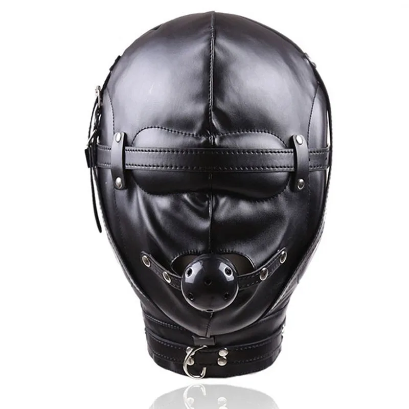 Кожаный бондажный капюшон с открытым ртом кляп шарик головной убор БДСМ фетиш Фетиш фиксаторы для косплея секс-игрушки для пар