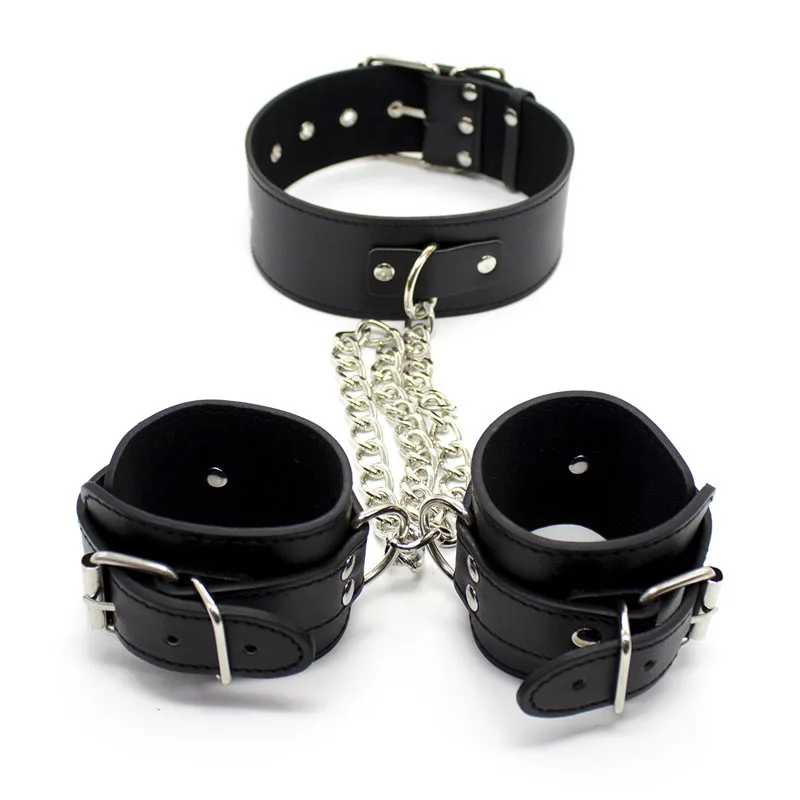 Кожаный бондаж БДСМ ошейник Металлические наручники фиксаторы раб Фетиш Шея наручники для взрослых секс-игры для телефона