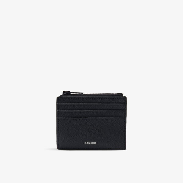 Кожаный визитница на молнии с тиснением логотипа Sandro, цвет noir / gris