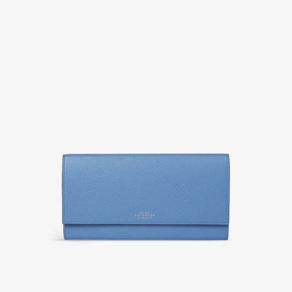 Кожаный дорожный кошелек panama marshall с тисненым логотипом Smythson, синий