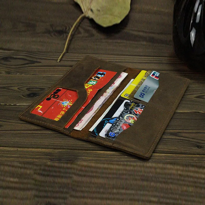 Кожаный кошелек ручной работы GROJITOO, мужской кожаный Длинный кошелек, двойная складная сумка для карт, кожаный мужской клатч Crazy Horse