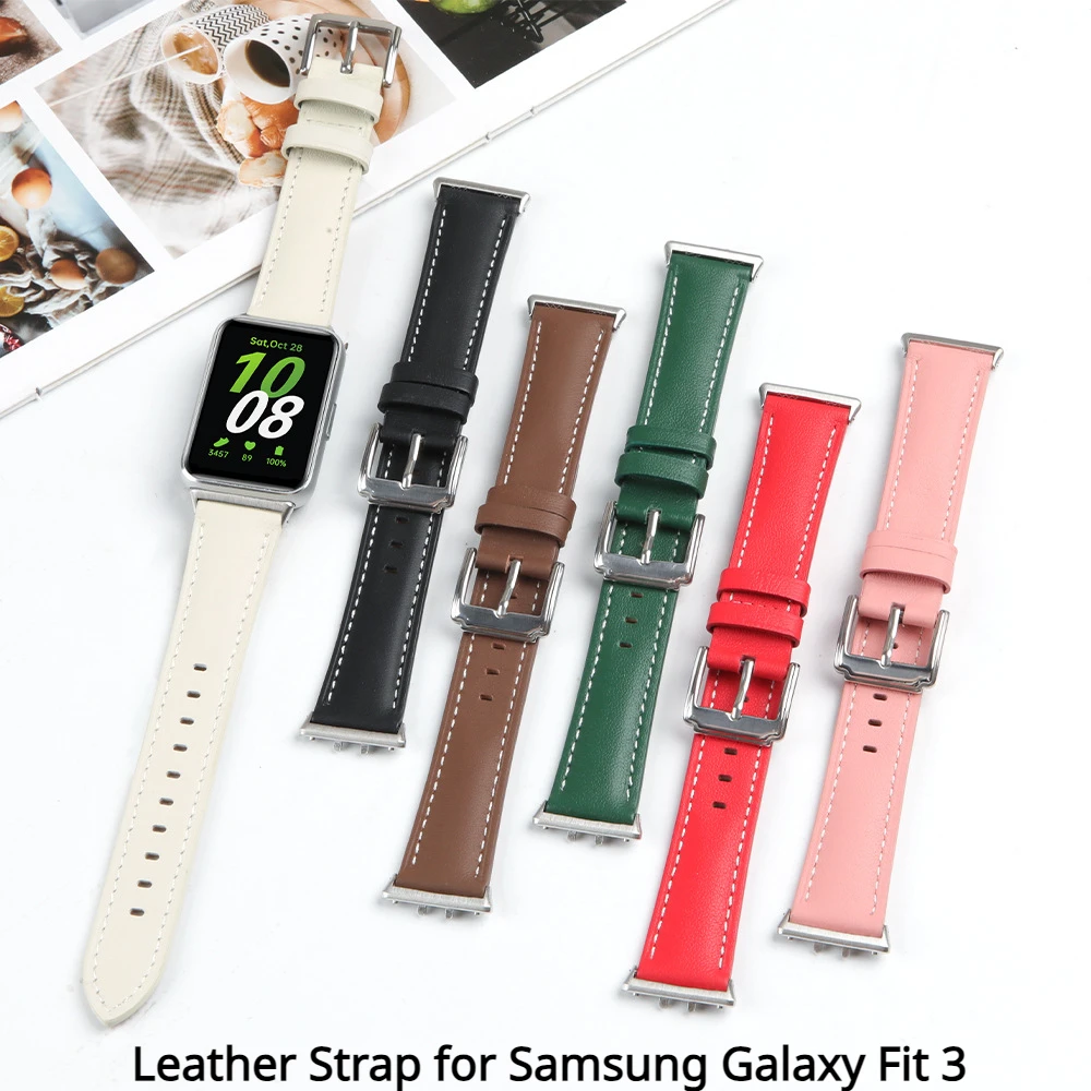 Leather Strap Watchband for Samsung Galaxy Fit 3 Watch, 6Colors Straps for Galaxy FIT3 Sharp Tailed Leather Wristband