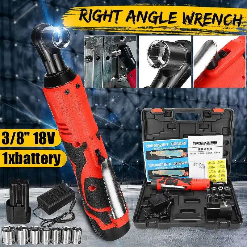Portable 18V Cordless Electric Wrench 3/8'' 60N.m Rechargeable Ratchet 90 degree Right Angle Wrench tools Set