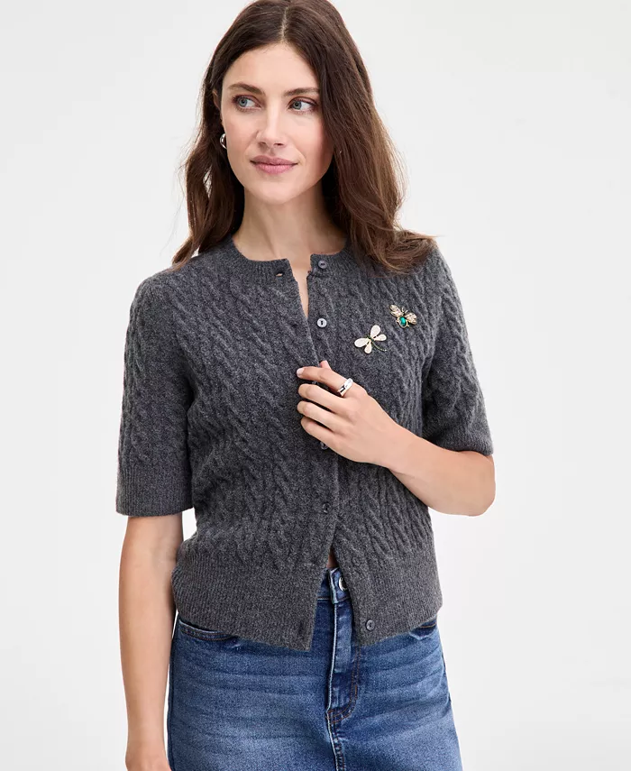 Женский кардиган с короткими рукавами, декорированный косичной вязкой On 34th, серый