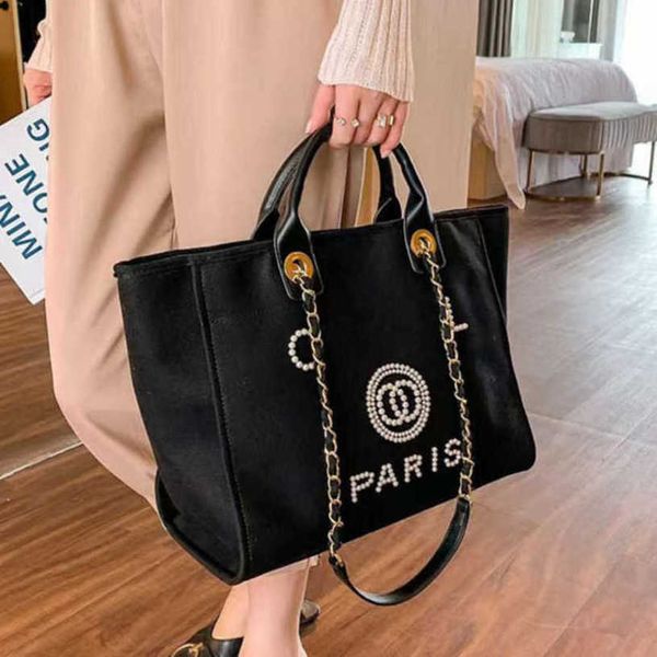 women's classic luxury evening bags brand ch handbags pearl tote canvas beach bag designers female portable shoulder large capacity big, Black;red