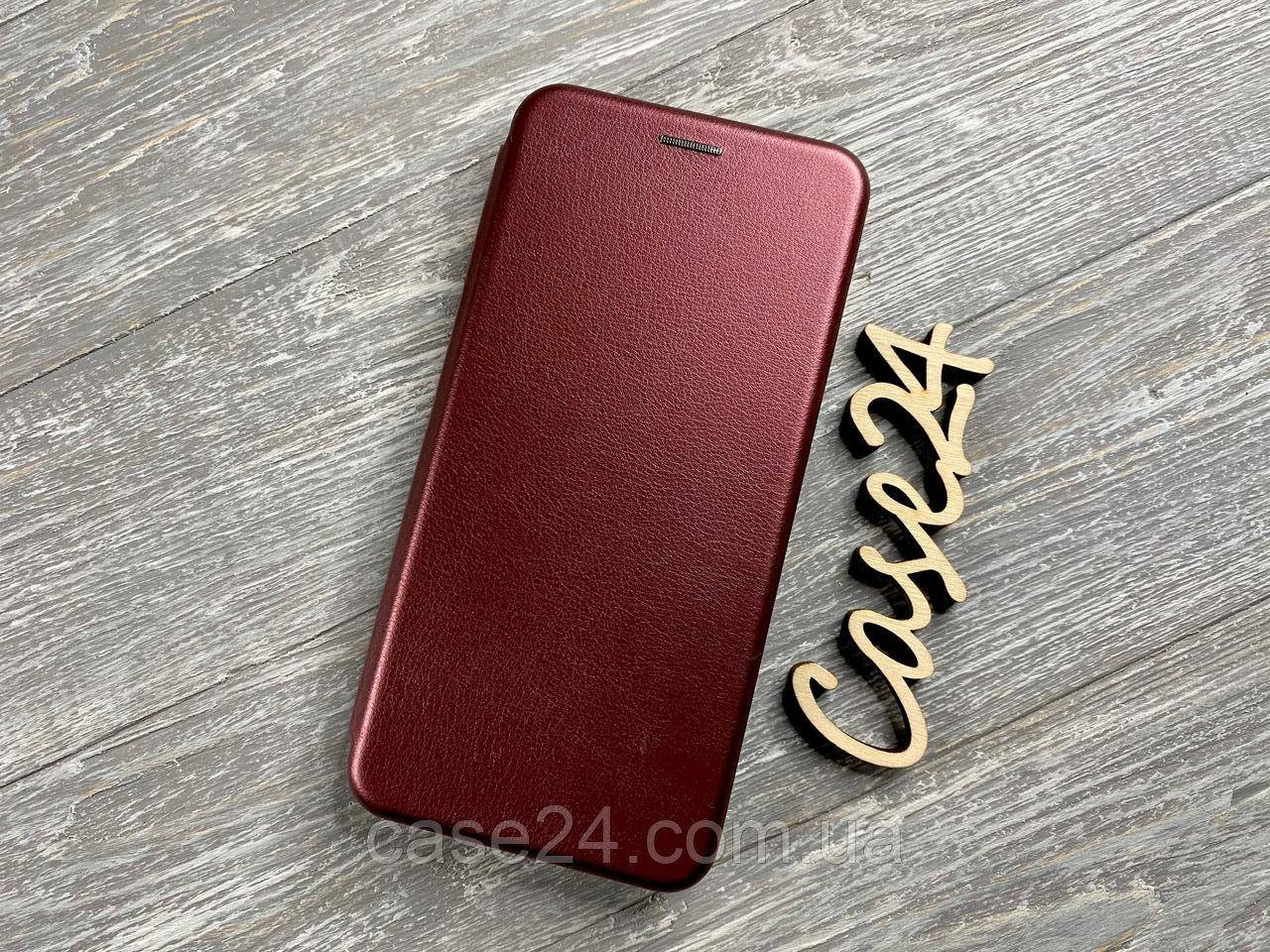 Кожаный чехол книжка Elegant на Samsung Galaxy M12 (на самсунг м12) бордовый