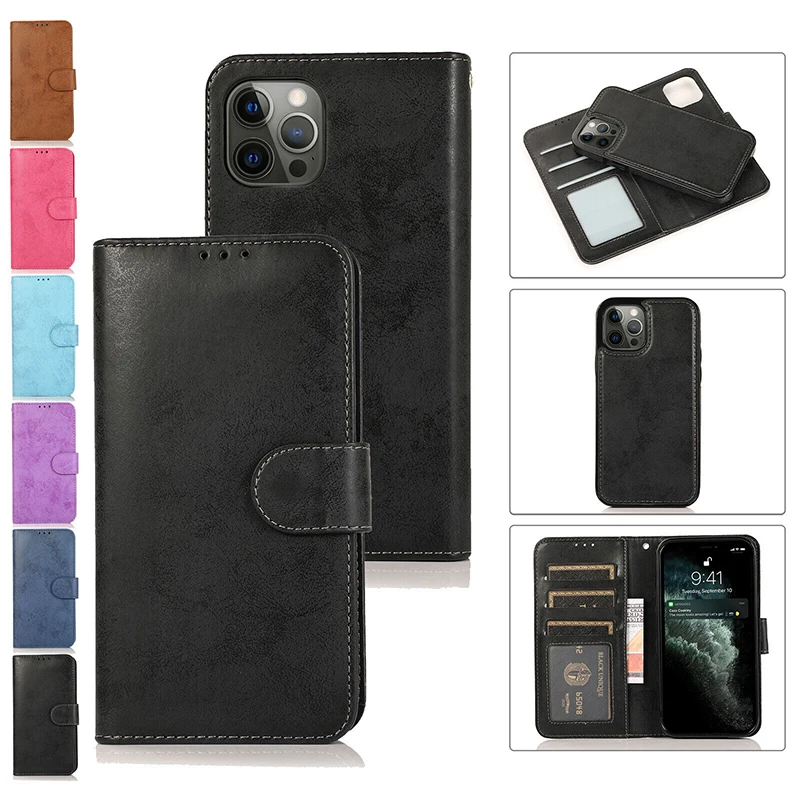 Кожаный чехол-кошелек для iPhone 14 Plus Pro Max, Складной флип-чехол из искусственной кожи с магнитной застежкой и отделением для карт и монет, с подставкой