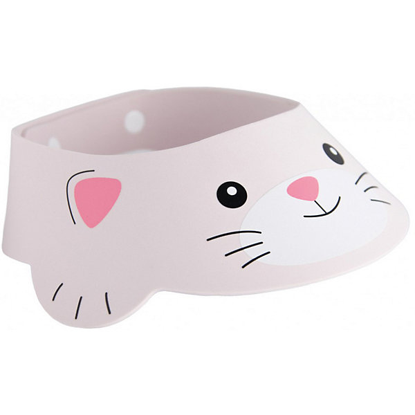 Козырек для мытья головы представлен в виде котенка. Диаметр козырька можно регулировать благодаря удобным застежкам на кнопках. Материал изделия не пропускает воду и не набухает. Чтобы воспользоваться козырьком, наденьте его на голову малыша так, чтобы волосы остались над полями. Во время мытья головы шампунь не попадет ребенку в глаза, нос и уши, а процесс купания перестанет быть неприятным ежедневным испытанием.