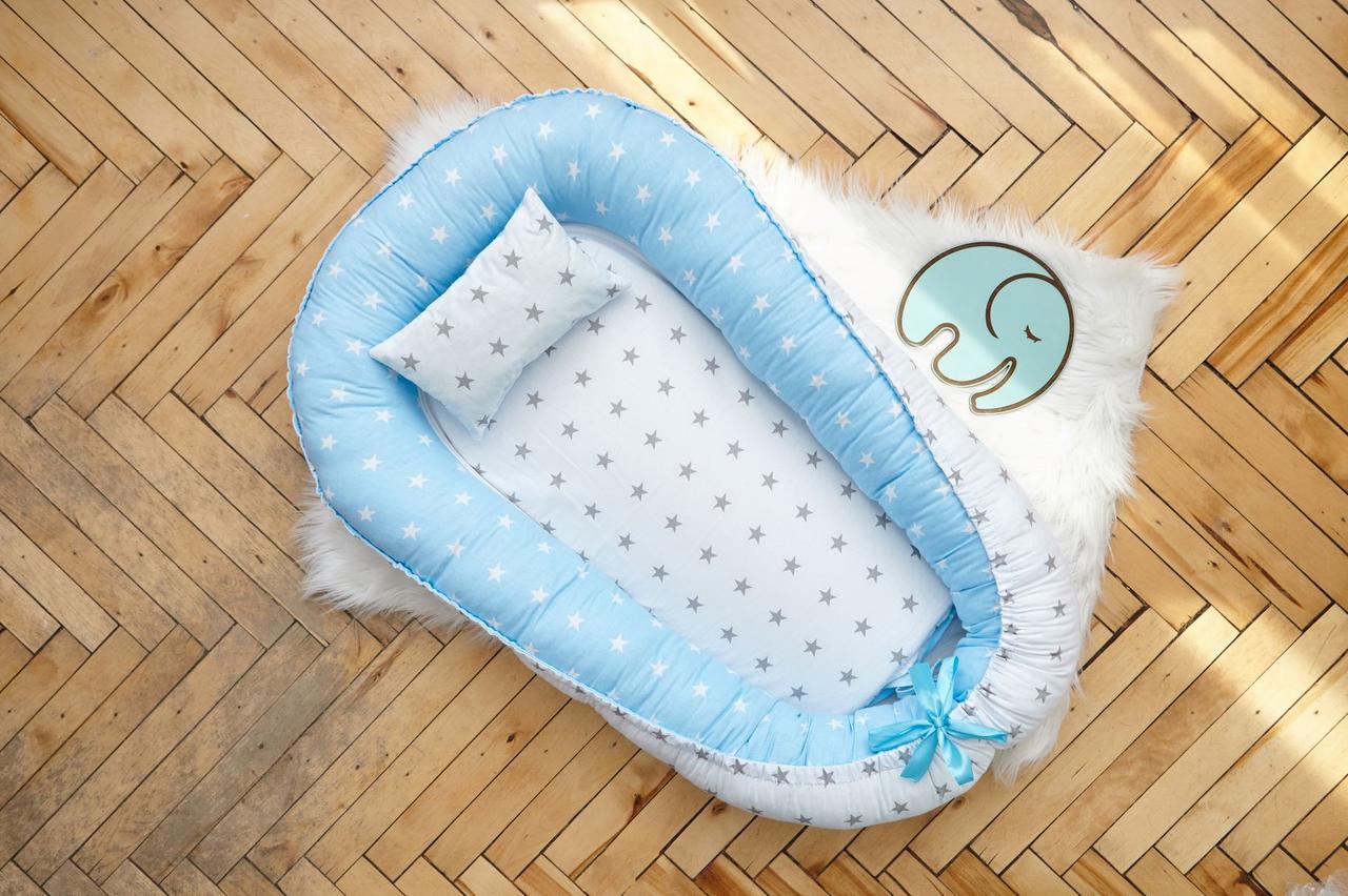 Кокон-гнездышко для новорожденных Добрый Сон Звёздочка бело-голубой 5-02