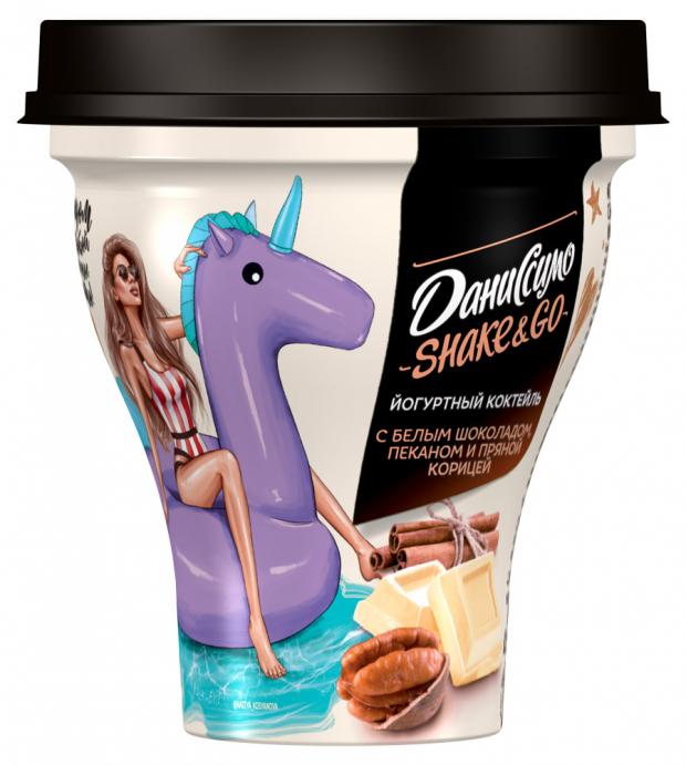 Даниссимо "Shake&Go" – это восхитительный йогуртный коктейль со сливками. Уникальная нежная текстура продукта буквально тает во рту, а благодаря стильной и удобной упаковке с трубочкой, его вкусом можно наслаждаться где угодно! Попробуй НОВИНКУ: йогуртный коктейль со вкусом белого шоколада, пекана и пряной корицы. Даниссимо "Shake&Go" – возьми удовольствие с собой!