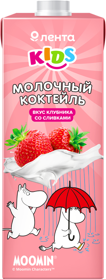 Коктейль молочный ЛЕНТА KIDS Муми Тролли Клубника со сливками 3.2%, без змж, 950 г