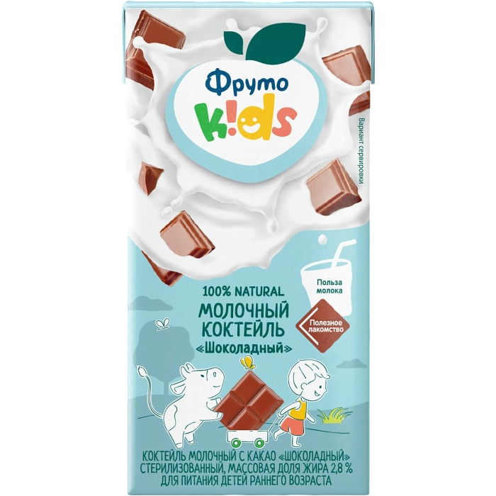 Коктейль молочный ФрутоKids Шоколадный 2,8%, 200 мл