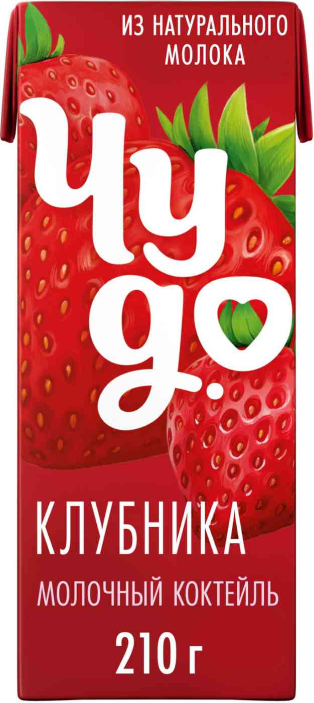 Молочный коктейль Чудо со вкусом Клубника 2% из натурального молока без добавления консервантов. Коктейль молочный с клубникой - десерт, который можно взять с собой для перекуса и для десертного настроения. Необходимо встряхнуть перед употреблением.Бренд «Чудо» больше 20 лет создаёт кисломолочные, молочные продукты и десерты из отборных ингредиентов: воздушные творожки, питьевые йогурты, густые йогурты, молочные коктейли, пудинги и йогурты с шариками.