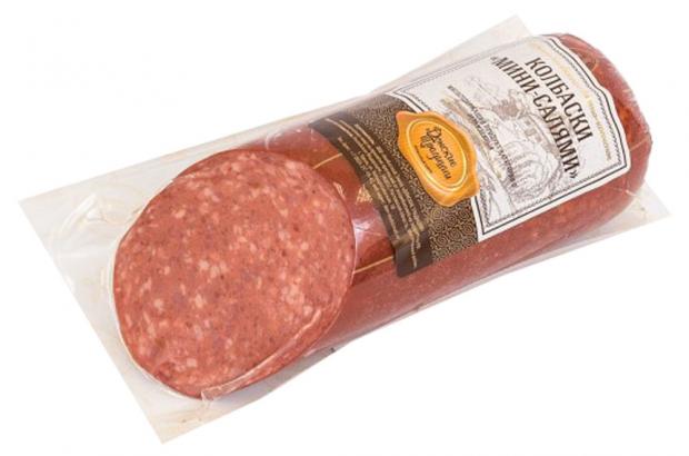 В ассортименте нашего завода представлена варено-копченая колбаса "Мини-салями", приготовленная из нежной свинины и курочки с мелкозернистым шпиком. Красивый срез, приятный вкус и невысокая цена привлечет любого покупателя. Подойдет и на вкусный перекус в виде бутерброда и на любые блюда, в составе которых присутствует колбаса.