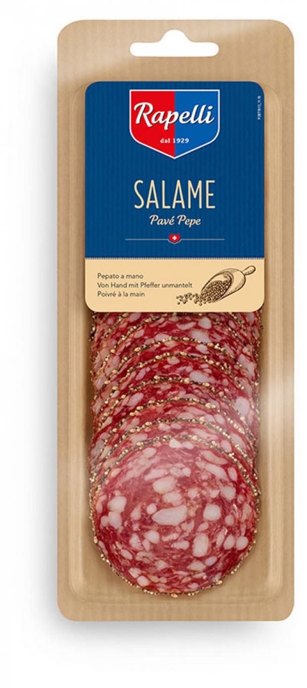 Салями производят в соответствии с рецептом, разработанным создателем компании Марио Рапелли в 1929 году. Колбаса обладает ярким вкусом с нотами черно перца. Обсыпка салями производится вручную. Деликатес отлично дополнит мясную тарелку.