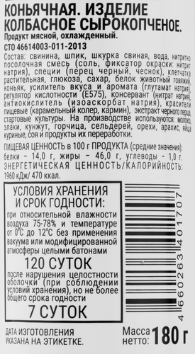 Колбаса сырокопченая Торговая площадь Коньячная 180 г