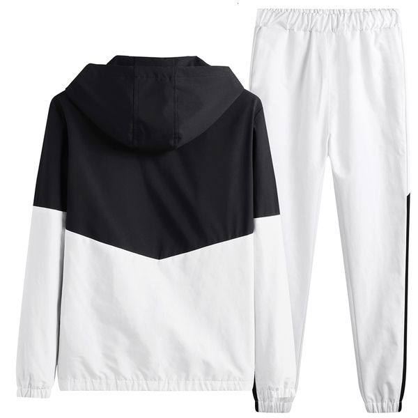 men's tracksuits patchwork set casual solid color tracksuit men two pieces spring summer jacket+pants sports hoodies suit mens clo, Gray