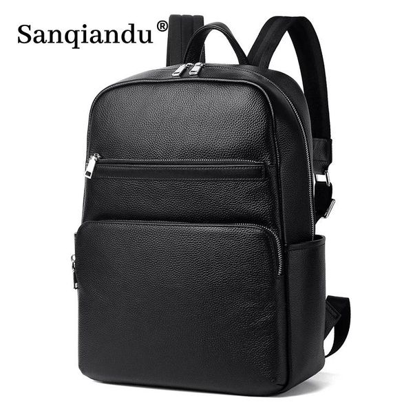 backpack multifunction genuine leather men lapbackpacks for teenager fashion male mochila leisure travel