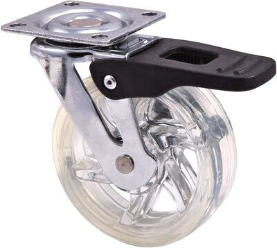 Колесо мебельное GTV д.75 мм полиуретановое на подшипнике со стопом (прозрачный)
