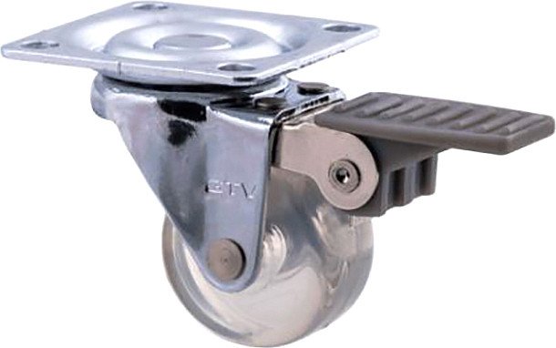 Колесо мебельное GTV 35мм полиуретановое на металлической площадке со стопом (прозрачный)