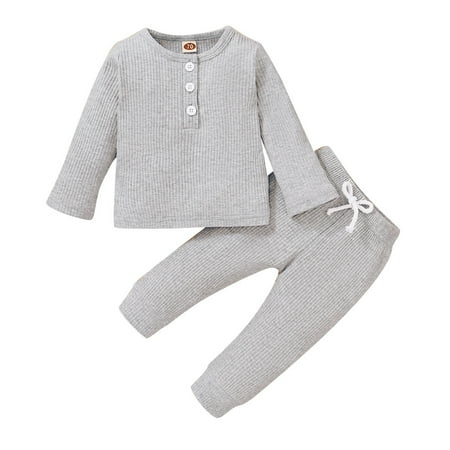 6 Months Baby Boy Clothes 12 Months Infant Boys Fall Winter Outfits Long Sleeve Round Neckline Tops Pants Set Gray