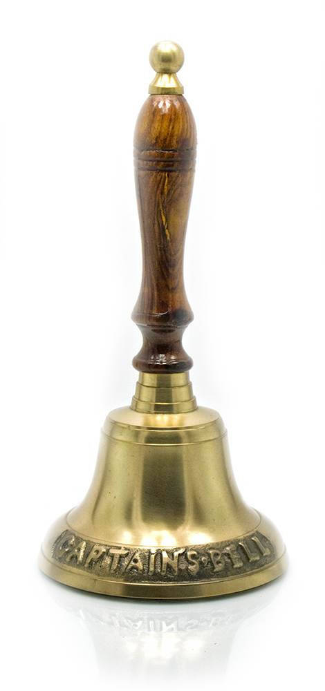 Колокол капитанский бронзовый с деревянной ручкой (23х10х10 см)