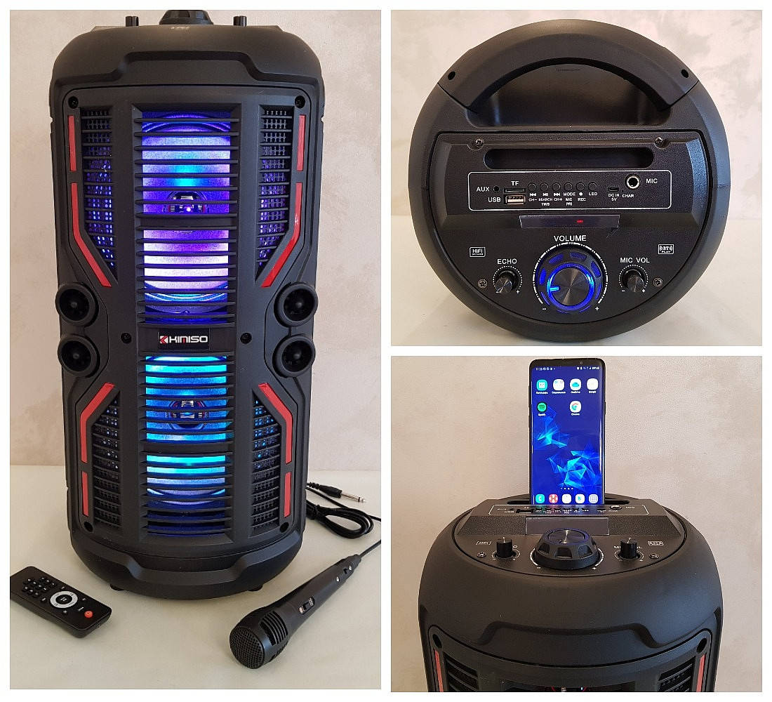 Портативная колонка с FM-радио, USB, SD, Bluetooth, проводным микрофоном и пультом дистанционного управления, Kimiso QS-A283, является идеальным аксессуаром для пикника, презентаций, вечеринок для детей, дней рождения или вечеринок и уличных мероприятий.