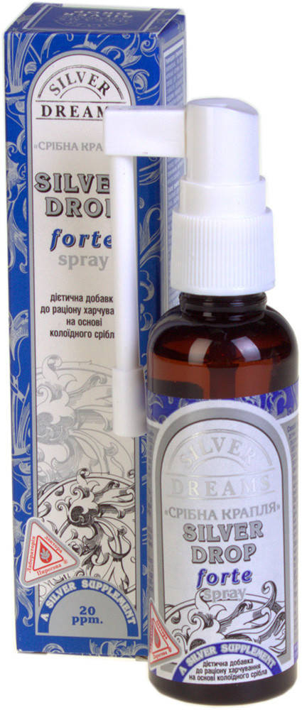 Колоїдне срібло 20ррм «Срібна крапля» від Лабораторії доктора Пирогова - це розчин колоїдного срібла, у формі спрею, для зовнішнього використання та орошення. Концентрація іонів срібла тут оптимальна, це - 20 мг / дм 3. Розчин іонів срібла абсолютно безпечний, при застосуванні (і зовнішньому, і всередину) не викликає алергічних реакцій і побічних ефектів.