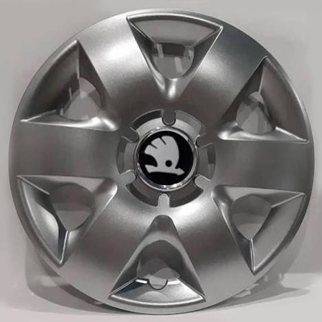 Колпаки Skoda R15 темная эмблема, серебро - (SJS ke3805) - комплект (4 шт.)