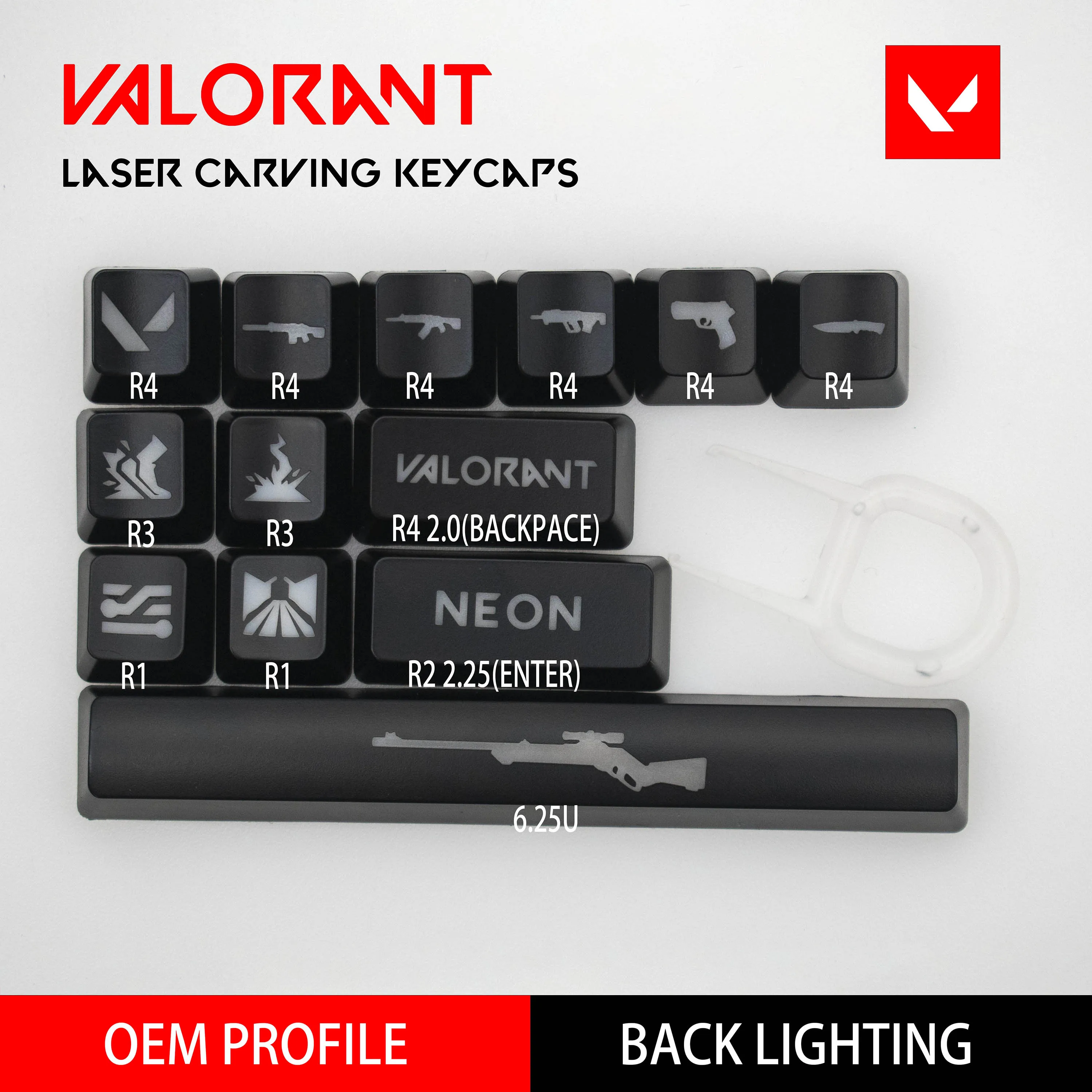 Колпачки для клавиш Valorant, неоновые колпачки для клавиш, колпачки для клавиш лазерной гравировки, колпачки для клавиш с подсветкой OEM профиля...
