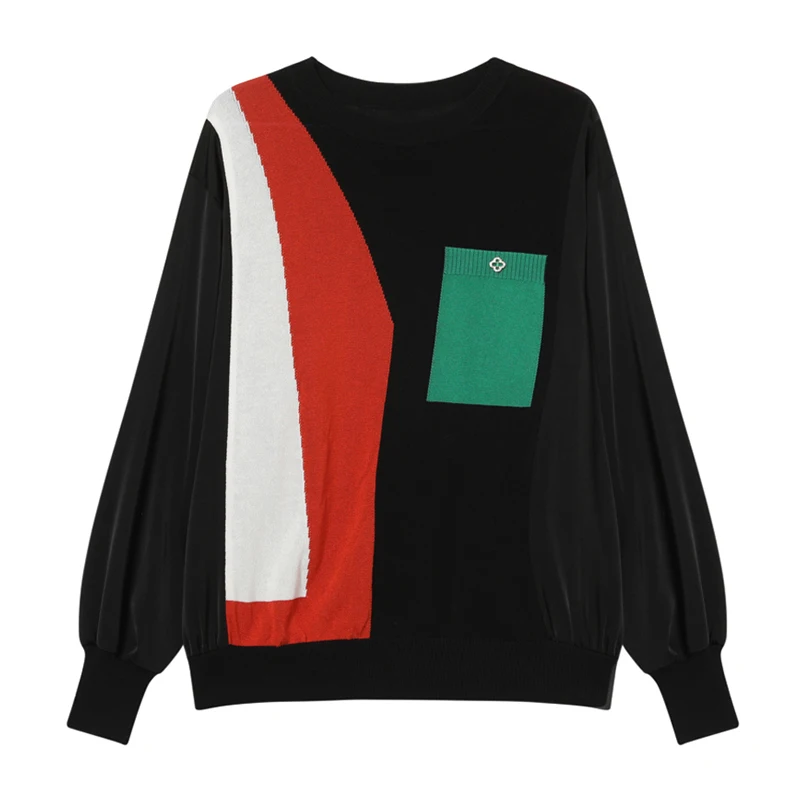 Women Patchwork Jumpers Knit Batwing Sleeves O Neck for Autumn Winter Casual Female Clothing Loose 98001