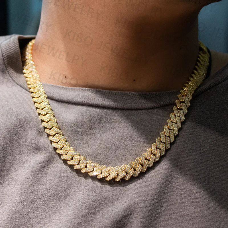 Колье из серебра с муассанитом, Ювелирное Украшение в стиле хип-хоп, кубинская цепь с бриллиантом, 12 мм