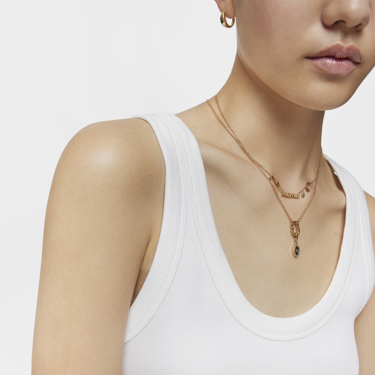 Вдохновленная нежностью, выраженной в различных видах почерка, коллекция TOUS Mama включает в себя такие украшения, как это колье из серебра с с драгоценными камнями.