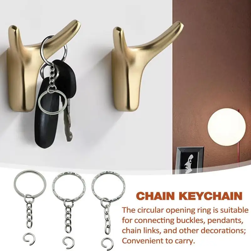 Кольца для ключей с цепочкой, металлические разрезы, открытые колечки для ключей с заготовкой, комплект колец для ключей на ремешке