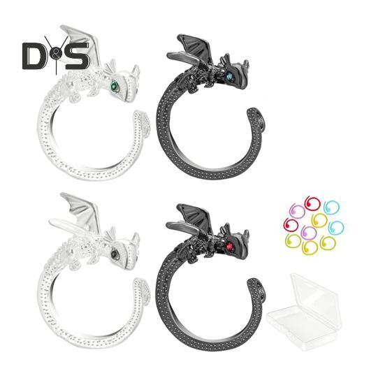 Кольца для натяжения крючком Dragon Crochet Регулируемые кольца для вязания крючком с металлическими спиральными маркерами петель Кольцо-держатель пряжи Dragon с коробкой для хранения для вязания C