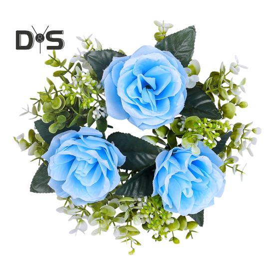Кольца для свечей, венок, искусственные розы, подсвечник, гирлянда, маленькие свечи, цветочные кольца, свадебные украшения для вечеринки, церемонии, декор синий