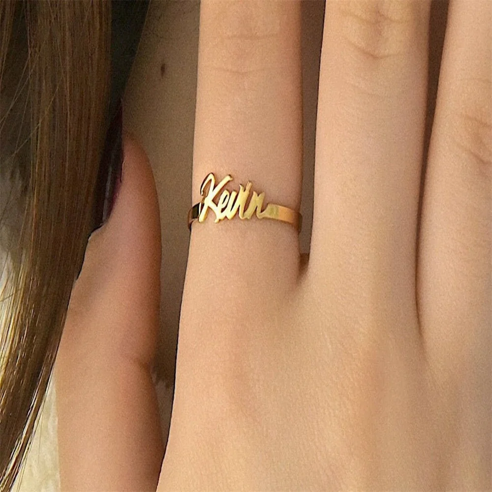 Кольца из нержавеющей стали с именем на заказ, Золотое кольцо с именной пластиной, парные кольца, обручальные кольца для женщин, кольца из не...