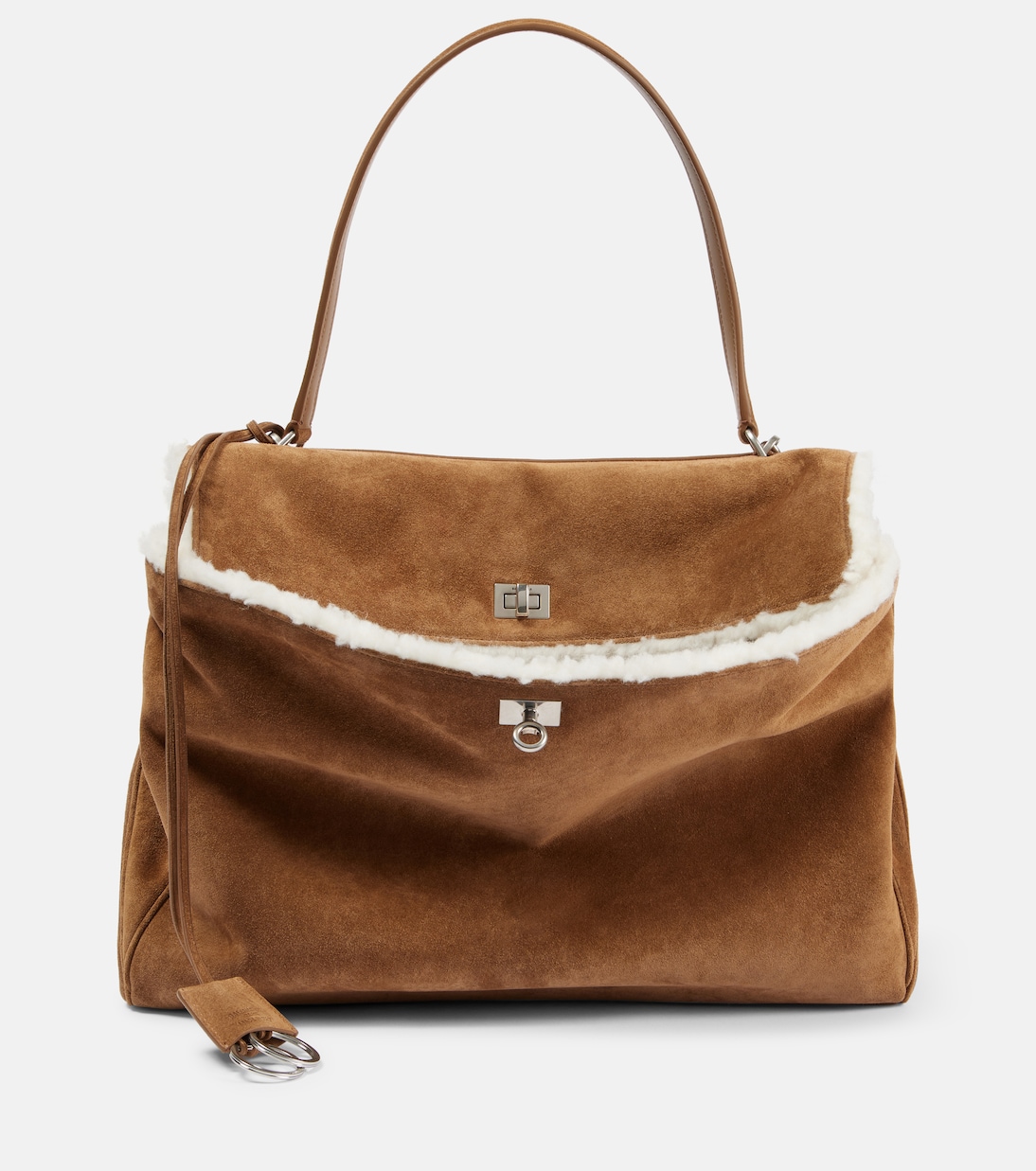 Rodeo большая наплечная сумка из замши с подкладкой из овчины Balenciaga, Noce/White