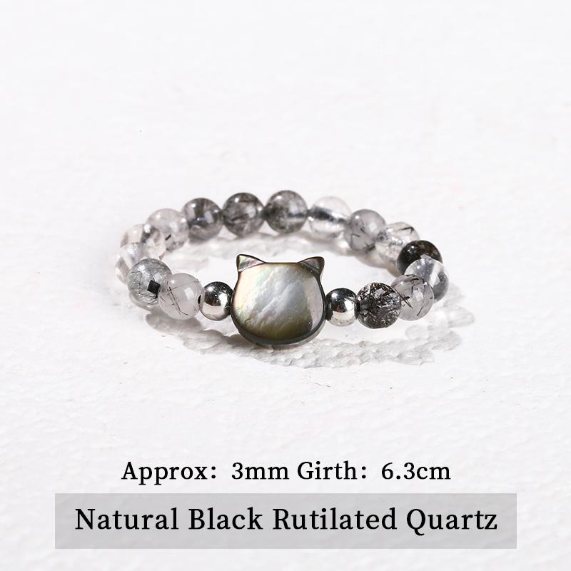 Кольца с подвеской в виде кролика из натурального черного рутилового кварца, женская модная шикарная бижутерия из кристаллов ручной работы, энергетические кольца для рейки-исцеления и йоги