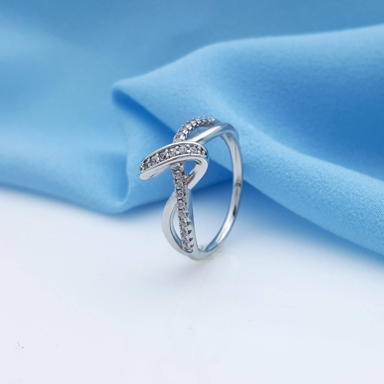 Кольцо Узелок со вставкой циркония, р.19, р.19,5, родий