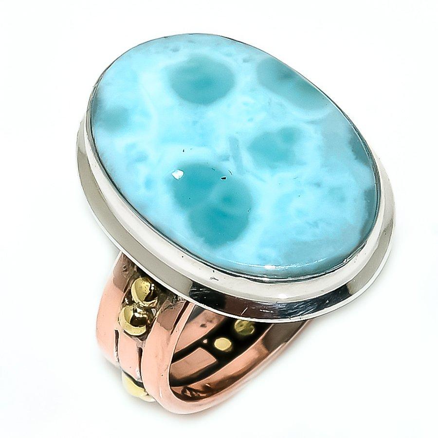 Кольцо в подарок из двухцветного серебра 925 пробы с натуральным ларимаром S.9 g3a81