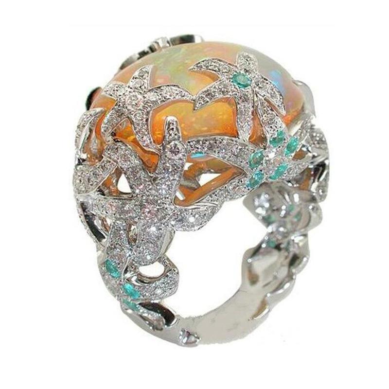 Кольцо в стиле ретро с кружевом из морской звезды и опалом - Европейская и американская модная бижутерия Size 8
